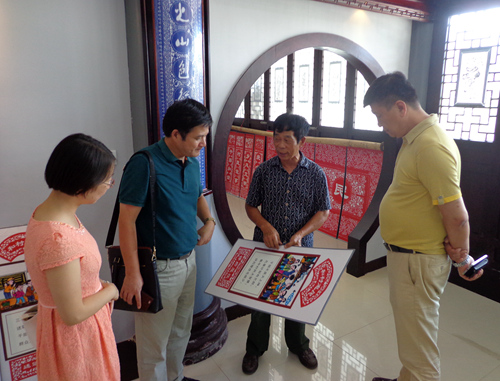 22日下午,张勇军一行首先来到市侨联首批命名的文化交流基地之一的象山县剪纸艺术馆,受到剪纸艺术家谢才华等的热情迎接。在展馆内,张勇军仔细参观每一幅展品,对不久前其作品在中国美术馆参加展出表示祝贺。张勇军指出,剪纸作为中国传统艺术之一,深受海内外中华儿女和国际友人的喜爱,希望谢才华剪纸艺术能与时俱进不断创新,进一步丰富作品内容,市侨联愿意和他一起努力,把剪纸艺术传播到世界各地,让更多的人了解中国、了解中国文化。
