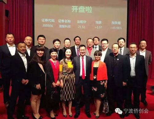 11月15日上午,由宁波市侨联青年创业联合会会长张彦担任董事长的宁波激智科技股份有限公司在深圳证券交易所正式挂牌上市,股票简称“N激智”,股票代码为300566。宁波市侨联主席李承戍与“侨创会”会员代表一起,共同出席了深交所的上市仪式。