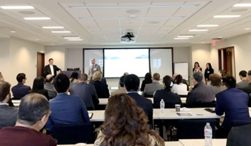 【侨报洛杉矶讯】 2017年5月5日上午11时美中企业家商会与摩根士丹利合办“特朗普时代中美经济展望论坛”与美国洛杉矶摩根士丹利总部盛大召开。此次论坛主讲人的有Chris Tharp,摩根士丹利财富管理副总经理。Danae Zhang,摩根士丹利理财顾问以及Bill Tugurian黑石集团美西主管。到场政商名士100余人,共同探讨特朗普时代中美经济展望。